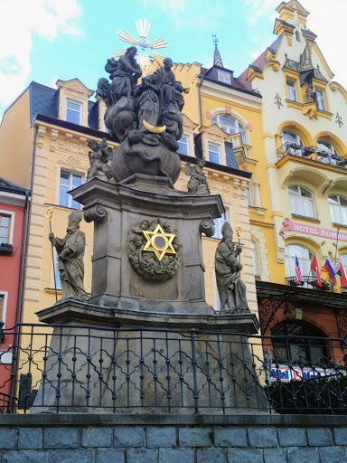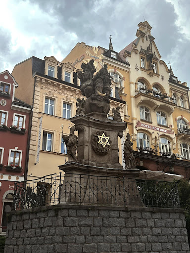 Read moreFrumoasa coloană barocă cu sculptura Sfintei Treimi a fost construită între 1715 și 1716 de către proeminentul sculptor regional Oswald Josef Wenda din Žlutice, lângă vechea primărie din Piața Principală din centrul istoric al orașului Karlovy Vary...Coloana ciumei a fost ridicată în semn de recunoștință pentru faptul că orașul balnear a evitat o epidemie de ciumă de amploare în 1713...consacrarea ceremonială a coloanei a fost efectuată în 1716 de către preotul paroh din Karlovy Vary, pe atunci, František Böhm...motivul central al coloanei ciumei este Încoronarea Fecioarei Maria a Neprihănitei Zămisliri de către Sfânta Treime...sculptura este construită pe un glob, înfășurat de șarpele păcatului originar...baza este un piedestal triunghiular, completat de statui ale episcopilor, Sfântul Adalbert și Sfântul Augustin și de o statuie a Sfântului Florian, patronul pompierilor...înălțimea totală ajunge la 9 metri...poziția dominantă inițială a coloanei, vizavi de biserica parohială Sfânta Maria Magdalena, a fost diminuată prin construirea Colonadei Izvoarelor Termale și prin alte modificări ale împrejurimilor...cu toate acestea, Coloana Ciumei din Karlovy Vary rămâne până în zilele noastre un exemplu frumos de...