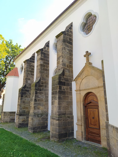The beautiful Roman Catholic church originated around 1135 by the Prague bishop Jan I. In the first half of the 14th century, the construction of a new three-nave basilica was initiated by the Archbishop Arnošt of Pardubice. In 1421 the church was severely damaged by a fire led by Hussits, after which it was lately gothic repaired by 1500. Another repair was carried out in 1613 in Renaissance style.