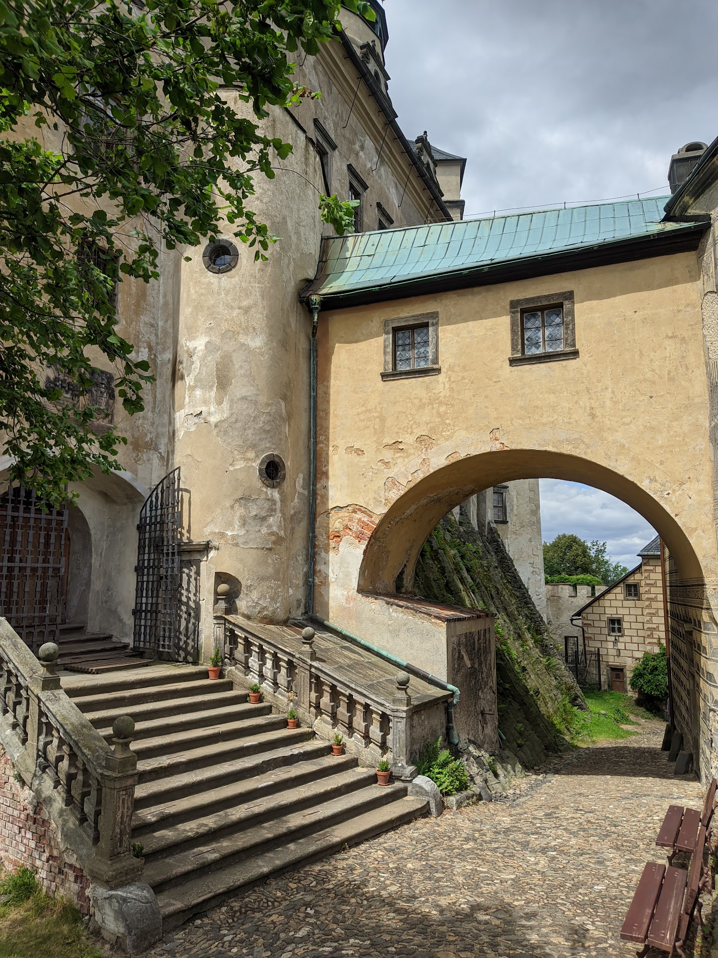 Read moreFriedland. We are greeted by a free car park and after just a few minutes' walk uphill we are at the ticket office of the castle, which is built imposingly on the rock. We choose the historical castle tour in Polish. Here you are very close to the border triangle of Germany, Poland and the Czech Republic, which is why many Poles spend their holidays here. I don't care if I don't understand Czech or Polish, because I get my reading text in German. The castle with the characteristic 60 m high tower was built in the 13th century and was initially owned by the Raden family. It was she who had a Renaissance castle built in the 16th century. It was decorated with amazing sgraffitos that were rediscovered in the 1960s. With the failure of the uprising in 1621, the family lost their estates and the new owner became Wallenstein, who was now also called Duke of Frydland. However, he rarely visited the castle. Nevertheless, it became very popular as "Wallenstein's Castle", so that it was opened to the public in 1801 by the then owner Count Clam-Gallas. It is one of the oldest castle museums in the Czech Republic and is richly furnished with beautiful and authentic furniture in...