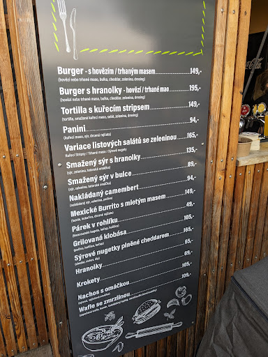 Stánek - 2 hvězdy po druhé návštěvě u nového provozovatele. Po ochutnávce těchto jídel - Burger s hovězím a hranolky, Panini s kuřecím masem, Sýrové nugety plněné čedarem a Smažený sýr v bulce.