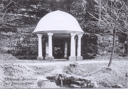 Zdislava's well, which was formerly popularly called "Bodláková studánka" (Thistle Well), can be found about 200 metres from the crossroads below Zdislava's chapel, on the road to Pivovarský Pond. There is an Empire-style gloriette from 1862 with eight Tuscan columns, behind which is a niche with a statue carved in the rock. In front of the gazebo there are steps to a modified water spring, which has always been attributed with healing powers. According to legend, the well was dug by St. Zdislava of Lemberk herself and its beneficial water was used to cure the sick. However, written sources are silent about the well for a long time. The first reports appear only in the second half of the 18th century in connection with the local burgher Jung Richter. He had placed a sandstone statue of St. Zdislava in a rock niche near the well to celebrate his cure. At the end of the 19th century, the spring was modified and piped into the Panenský potok (Maiden´s brook). It was topped with a sandstone spout, to which sandstone steps led up the slope. The current modification of the outlet of the Zdislava spring dates back to the 1990s and was built by the town of Jablonné...