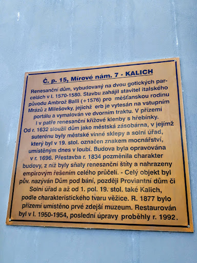 This is called bad luck: just during my short visit of Litoměřice, the Calyx House was closed for technical reasons for two weeks. Originally called the House Underneath Cupola has an unusual prospect on its roof (and the true symbol of Litoměřice) - a calyx shaped tower. Originally a late Gothic house from the first half of the 16th century, rebuilt in the Renaissance style by the Italian architect Ambrož Balli for the family of Mráz from Milešovka, is an important burgher house. Jan Samuel Mráz let to rebuild this house in the years 1570-1580 to today's basic form with a calyx dome. The Mráz family held the office of the permenters of the mountains of the vineyards and they were also the city councilors. The house was used not only for festive occasions for a family, but was also confered to the rare visits of Litoměřice. A meeting of the city council was held in the Kalich Tower. At meetings, each councilor had one window in which he was hanging out the flag - at first glance, it was clear who attended...