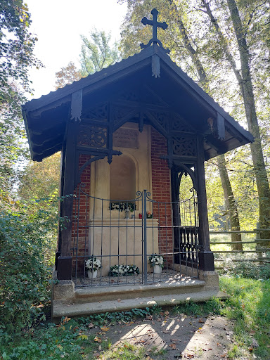 Pěkně zrestaurovaná kaple, kterou nechal postavit hrabě Jindřich Chotek v roce 1861 na památku své zesnulé manželky Charlotty se nachází v zámeckém parku hned vedle...