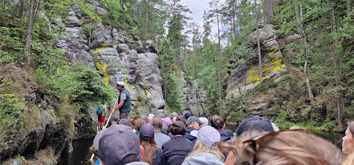 Read moreObowiązkowo trzeba zaliczyć to miejsce będąc w Adršpraskich Skałach. Najlepiej skorzystać z rejsu łodzią w wsród uroczych skał, który pomimo że jest krótki na długo pozostaje w pamięci. Ale największe wrażenie robią chyba na wszystkich bardzo sympatyczni przewoźnicy łodzi, którzy w dowcipny, a wręcz kabaretowy sposób opisują całą trasę jak i jej poszczególne elementy. Na trasie jest dużo miejsc i figurek i zabawnych komentarzy do nich. Nie zabraknie też ,,chwili grozy'' przy mijaniu miejsca zatonięcia Titanica. Nie da się wszystkiego opisać w paru zdaniach dlatego po prostu trzeba tam być. Obsługa dobrze daje sobie radę z j.polskim i bez większego problemu można wszystko zrozumieć. Dojście od kasy (50CzK) do pomostu przebiega przez szczelinę skalną pod górę potem w dół i wymaga trochę cierpliwości, ponieważ na tym krótkim odcineku w sezonie są kolejki i trwa to zazwyczaj od 20-50 min. Ale warto czekać i...