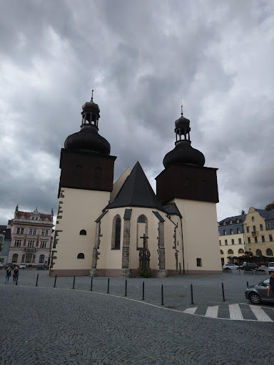 Read moreVelice zajímavý dvouvěžový jednolodní římskokatolický farní kostel na Masarykově náměstí v Náchodě je umístěn v jeho středu . Kostel je původní gotický ze 14 století a po velkém požáru města roku 1663 i kostel vyhořel a po opravách krovu byly obě dvě ( nestejné ) věže sníženy a dnes jsou vysoké kolem 40 metrů lidově zvané Adam a Eva . Severní Adam je o něco nižší . V kostele je průvodce a jeho návštěvu uvnitř jsem musel z časových důvodů vypustit při mém výletu . Zvenku je ještě krásná připomínka na obléhání města Švédským vojskem za třicetileté války v roce 1639 kdy se vnitřní město Náchod ubránilo a podle pověsti je pozůstatek jedné dělové koule v severní věži dobře viditelný od repliky děla ve směru od hlavně částečně zavrtaný do zdiva a fasády již zmíněné...