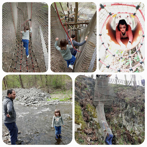 Zusätzlich kann man dort Karten erwerben für den daneben liegenden Klettergarten. Anspruchsvoller Parcours im Alter von 6-12, wir sind mit geklettert und haben uns dort sehr lange aufgehalten, ohne zeitliche Beschränkung und man hat einen schönen Blick von dort auf den Fluss ostriche.