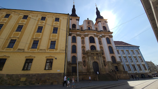 The building stems from the prototype of a Jesuit church with a ring of chapels above the main nave. The most expressive element of the undulated frontispiece of the cathedral is the monumental portal with twisted columns, a balcony with a balustrade and cartouche. The cathedral's interior has lavish stucco work and painted ornamentation. The church was built on the site of a former Minorite Monastery, part of the oldest Jesuit college in Moravia. The original church was destroyed by the Swedish army but was not restored as it was not big enough. The new church was constructed following the design and a wooden model by M. Klein under the guidance of L. Klöckel. During a visit by Cardinal Aldobrandini, later Pope Clement VIII, or on state visits by emperors, the church could hold as many as 2,500 people. In 1773, when the Jesuit order was dissolved, the complex passed to the local military garrison and served as a warehouse. Today it is once again accommodates the university established in 1576, renowned in the 18th century for its graphic theses, carved in Czech and...