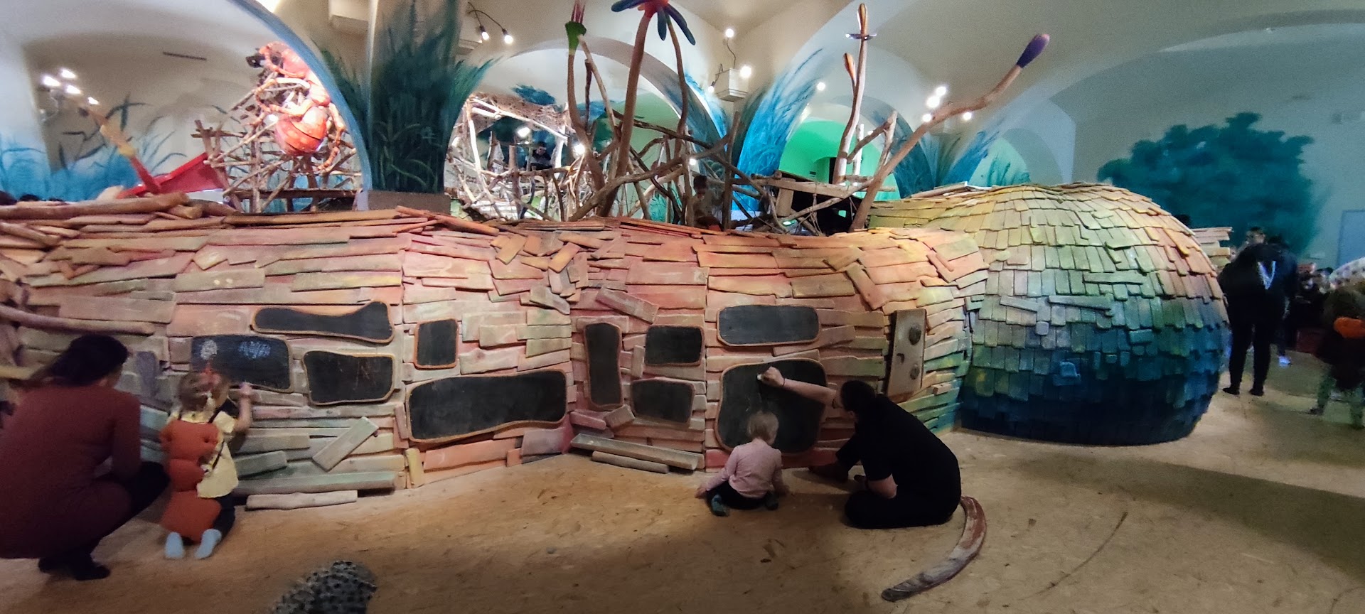 My jsme se při naší první návštěvě rozhodli navštívit větší z expozic - Mraveniště. Jedná se o obří dřevěný labyrint tunelů, skrýší a mostů, kde se děti mohou proměnit v mravence a zároveň se o nich hravou formou mnoho dozvědět. Převlečeni za mravence prozkoumají spletité chodbičky a dalších krásy, které tento unikátní prostor nabízí.