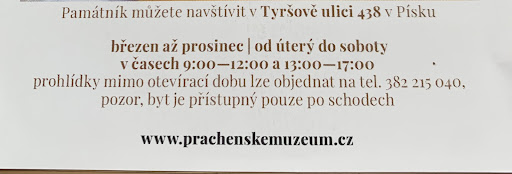 Read morePrácheňské muzeum je muzeum v Písku, které je umístěno v budově gotického hradu. Vchod do muzea je branou písecké radnice z Velkého náměstí. V současné době se tato instituce věnuje kromě publikační a odborné činnosti práci s veřejností. V průběhu sezony (březen - prosinec) nabízí návštěvníkům celou řadu výstav, přednášek či akcí jako např. Muzejní noc nebo Předvánoční burza minerálů....