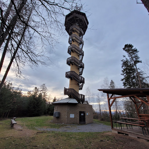 Read moreByla jsem se podívat v nevhodnou dobu ..přiložim fotky jak mají otevřeno a kontakty..jinak k rozhledně jsem dojela autem , z Osečan mě vedla navigace ale dá se tam zajet jinak doporučuji jet po asfalt silnici dokud neuvidíte odpočku v lese na rozhlednu(navigace mě vedla úplně jinak)po odbočení lesní cestou k rozhledně jsem potkala dvě auta a 1 motorku..tak je tam docela rušno...před samotnou rozhlednou je závora..v okolí jsou lavičky a stojánek na kola, pak tam jsou zastřešené boudy asi občerstvení...na stromech jsou pověšené cedule, zákaz kouření a rozdělování ohně.. bude tam určitě...