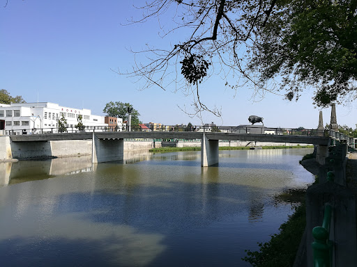 Nový most z roku 2012 od architekty Aleny Šramkové, který nahradil nevyhovující, pěší lávku z šedesátých let minulého století. Postavena byla na místě nevyhovujiciho dřevěného mostu, který stejně jako ona dočasně nahradil původní, koncem druhé světové války zničený most. Ten to most, postavený v roce 1904 byl prvním železobetonovým mostem v celém Rakousko-Uhersku. Poslední památkou na původní secesní most jsou sloupy na straně blíže městu a...