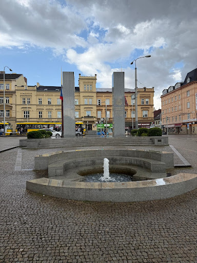 The foundation stone of the predecessor of today's memorial was laid shortly after the war. In 1946, a competition for an artistic design was held, which was won by the sculptor Oskar Kozák. However, it was not realized and the cornerstone was removed by the former regime in May 1948. A new foundation stone was laid after the coup in 1990, on the occasion of a visit by President Václav Havel and US Ambassador Shirley Temple-Black. In 1993, a competition for the design of the memorial was announced, in which several dozen authors participated. The jury chose Vladimír Preclík's design, but the public disagreed. The town hall held a public debate, which resulted in the design of two pylons that was generally accepted. This is where the situation gets strangely convoluted (at least for me): the monument was unveiled in 1995, but the people involved were asked not to claim authorship. The monument is thus presented as an anonymous work, although the authorship of the individual parts is known (???). In April 2016, the original pylons of the monument were removed due to cracking of the material. After a search for a suitable stone, a replica of the original memorial was unveiled in May 2018. These are two columns of French granite...