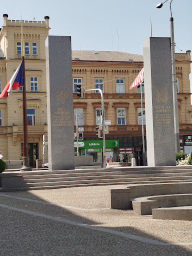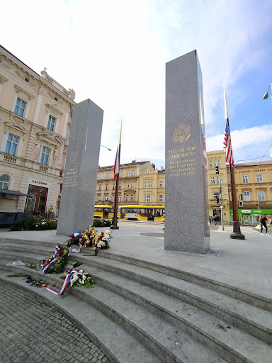 Read moreJest to pomnik upamiętniający wyzwolenie Pilzna przez armię amerykańską w maju 1945 roku. Kamień węgielny pod przyszły pomnik położono w 1990 roku, ukończone dzieło odsłonięto 6 maja 1995 roku. Pomnik ma formę dwóch granitowych pylonów z podziękowaniami w języku języku czeskim i angielskim. Pomnik obejmuje też tablicę z mapą reliefową Europy, która przedstawia postęp wojsk amerykańskich na europejskim polu bitwy podczas II wojny światowej . Pamiątkowe dzięki, Ameryko! , wraz z pobliskim pomnikiem generała Pattona , co roku w maju są miejscami czci i pamięci. Dwa granitowe pylony mają kwadratową podstawę 110 centymetrów i wysokość 6,65 metra. Każdy waży 22 tony. Na chodniku przed pylonami znajduje się duża biała pięcioramienna gwiazda, w centrum której umieszczona jest okrągła brązowa tabliczka z reliefową mapą Europy, na której zaznaczono kierunki działania wojsk USA na europejskim polu bitwy II wojny światowej. Maszty flagowe stoją po obu stronach gwiazdy. Po przeciwnej stronie pomnika znajdują się schody, pod którymi znajduje się...