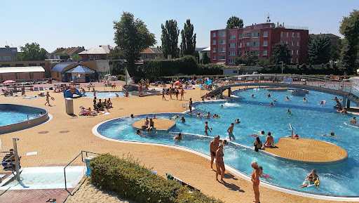 Chodím jsem ráda, je tu super bazének pro malé děti a to je pro mě teď aktuální. Na tobogány je super přístup. Jsou tu celkem tři + veliká žlutá zvlněná skluzavka. Dál je tam divoká řeka, velký balon na dělání mořských vln - ten jede co hodinu, malý oddělený kout na plavání - jsou tam myslím jen tři dráhy. Pak bublinky, trysky a velká plocha ke koupání. Tobogány jezdí na dvě strany, dá ss vyjít po schodech. Co se mi hodně líbí je, že si můžu vybrat jestli si lehnu na trávu, kde je dost místa (i pod stromky a do soukromí) nebo na malou písčitou pláž.. u ní je pak hned bazének kde je mělká voda a postupně je hlubší, lidé se tam vyhřívají na sluníčku, ale přitom sedí ve vodě a nebo na dlažbu. Součástí jsou i houpačky pro malé i větší děti. V zadu jsou nějaké atrakce (zorbing, skákací hrad a vodní fotbal). Občerstvení jsou dvě. Stánek s pivem, hranolky, párky, langoš atd.... a pak jakoby restaurace s jídly (gulášovka, losos, řízek, káva... atd). Zmrzlina a ledová káva. Jídlo si tu moc nedávám, moc mi nechutnalo. Nově dělají i nějaké míchané nápoje. Obrovská nevýhoda je, že vždy když je fakt teplo, tak je koupák nacpanej k prasknutí, všude velky fronty a nedá se pomalu ani projít nebo najít místo. K zapůjčení jsou tam lehátka. Šatna, wc, skříňky na věci...