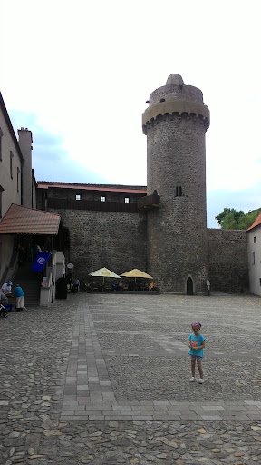 Very impressive Gothic tower, built after 1260 by Bavor II. is 35 meters high and has 99 steps leading to the top. Interesting is the blade, which prevented the tower from damaging during bombardment. A similar tower can be founf at the castle Zvíkov, Bítov nad Dyjí or Svojanov, the castle Český Šternberk even has a separate front defense tower equipped with such a cutting edge. In all cases, it was an adaptation of fortification objects to the still improving artillery technique. The tower got it´s name from the device to launch the convicts to the bottom of the tower where the dungeon was. Entrance at the foot of the tower at II. the courtyard was only broken through in the 1930s during the reconstruction. The entrance room of the tower with dummy winch is arched with the original Gothic vault and there is a Gothic...