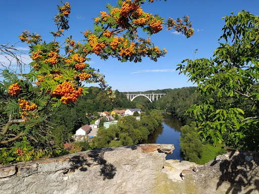 Truly amazing reinforced concrete arch bridge was the second technical monument (after the Stádlec Bridge), which I wanted to experience firsthand while wandering along the Lužnice river from Tábor to Písek. Ironically speaking, this is a mockery of today´s Czech, because this demanding object was built just in two years (1926-28). And these were really different building and construction technologies than they are today. The remarkable work was created according to the project of Ing. Eduard Viktora, the builder was the District Administrative Commission. The bridge was ceremoniously opened on October 28, 1928. Approximately 400 workers of various professions took part in the implementation and no one lost their life during the entire construction, there was not even any major accident. Former reinforced concrete material revolution made it possible to bridge the valley with the help of only a single arch with a span of 90 meters at a maximum height of less than 60 meters above the surface of the Lužnice river. Almost nine-meter-wide bridge deck spans over 190-meter-long...
