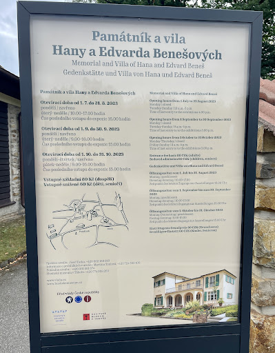 Read moreHrůza a děs. Něco podobného jsem nezažil. Což památník, ten je super, vkusně provedená vzpomínka na prezidenta Beneše a jeho ženu, doplněna super filmovými dokumenty. Potud OK. K památníku patří i prohlídka vily E.Beneše velkoryse propůjčena pozůstalými jako muzeum jeho rodiny. Kvůli tomu jedu přes tři čtvrtě republiky a ejhle . Čučí na nás zavřené dveře zahrady a vily ze všech stran, ale ne tak pro všechny. Zřejmě po vysilující práci naší vlády a jejich rodinných příslušníků si přijeli někteří politici rekreovat do vily, v domnění, že je to snad jejich majetek. Nikde ani zmínka na internetu, v tisku, ve sdělovacích prostředcích, že bude zavřeno. Velice mi naštvali. Chudák Beneš by se v hrobě obrátil. Jedna...