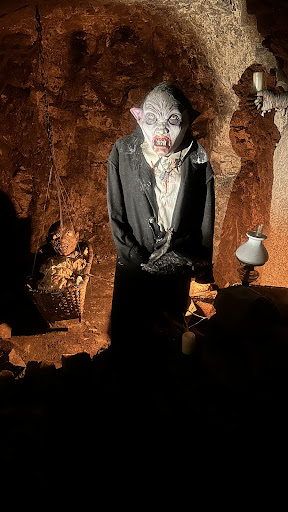 Я - человек взрослый,подобных страшилок уже давно не боюсь,поэтому в страшное подземелье пошла,в надежде на веселое времяпрепровождение. Кассир, взяв с нас оплату, спросил здорова ли у нас психика и получив положительный ответ,пустил нас внутрь... мы спустились вниз по старой,пыльной лестнице,вдоль которой были расставлены свечи. Перекошенный могильный крест с надписью RIP подсвеченный мерцающей свечкой,палач с отрубленной головой в руках,фигурка Добби,смерть с косой,что-то гремящее цепями за решеткой,заупокойный звон колокола,нечеловеческий,истошный крик,стон,тяжелое дыхание и мы,в темноте и только мерцание свечей, расставленных на пыльном полу,освещает путь ниже и ниже в подземелье.... я была в подобных местах,но именно здесь,я даже не знаю почему,мне стало страшно по настоящему. А потом,я увидела,что в глубине коридора,кто-то стоит... ноги отказывались идти и я (теперь самой смешно) искренне начала надеятся,что это мне кажется. Но подойдя ближе,я поняла,что не кажется! В дверном проёме стояла фигура... и вот потом началось самое интересное! Очень...