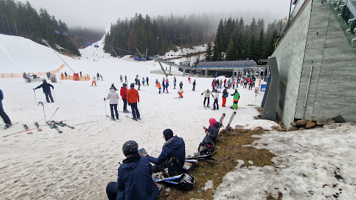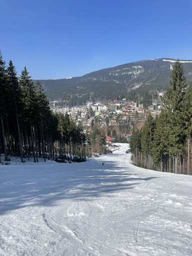 Read moreTutaj mamy największy darmowy parking w mieście o nazwie P2, dlatego większość osób swój przyjazd rozpoczyna właśnie tutaj. Parking tutaj jest duży ale w sezonie a szczególnie podczas weekendów i tak za mały na pomieszczenie wszystkich chętnych. Po zaparkowaniu mamy kilka opcjipierwsże jest wyruszenie od razu na wyciąg znajdujący się tuż przy parkingu i wjazd na Hromovkę, z której możemy zjechać czerwoną lub niebieską trasą, możemy też zjechać czerwoną trasą FIS jedną z niewielu oświetlonych w nocy i dostępną do jazdy w środy i soboty. Mamy tutaj mapy, punkty gastronomiczne, wypożyczalnie , automaty do skipassów, toalety darmowe, szkółki narciarskie, przystanki ski-busów. Generalnie pełna infrastruktura . Jednak w związku z tym że jest tu najwiekszy parking to ludzi też na tym wyciągu jest najwięcej. Osobiście polecam pojazd zostawić tutaj i ski-busem lub taxi pojechać np. na Medvedin a po godzinach szczytu czyli od 13:00 można wrócić tutaj na górkę i...