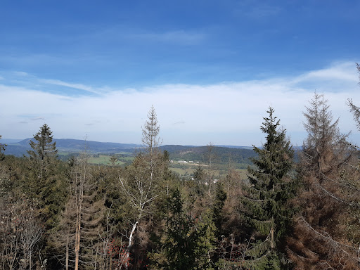 Read morePrzepiękne widoki z góry widać naprawdę spory obszar i wiele pasm górskich. Wieża bardzo solidna konstrukcja i spiralne schody na górę. Dość wysoka Podczas wiatru wydaje charakterystyczne dźwięki przypominające gwizdanie. Lasy dziewicze w Czechach jest mało ludzi podczas podejścia nie spotkałem żywego ducha również na wieży. Pod wieżą stoliki drewniane z ławkami gdzie można zjeść i posiedzieć. Jedyne do czego można się przyczepić to zagospodarowanie dojścia. To lekka katastrofa żadnych oznaczeń szlaków ani wskazówek jak dość do wieży. Zaparkowałem na skraju wsi i szedłem po prostu na intuicję. Dojście na wieżę żeby trafić nie jest prostą sprawą. Okolice szczytu to jakby wymarły las pełno walającego się suchego drewna wrastający młodnik, krajobraz przy samej wieży jakby księżycowy. Rzadko się widuje coś takiego trzeba iść na wyczucie - żeby dojść do wieży. Natomiast widoki z gory rekompensują trudy dojścia. Polecam odwiedzić to...