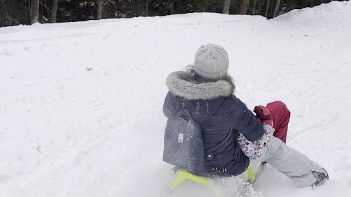 The sledding was also a great experience, but we had to cross the slopes a few times where skiers and snowboarders were crossing. There were a few pits that made the sleigh fly high and hurt our backs, legs, and butts, but it was all part of the fun!