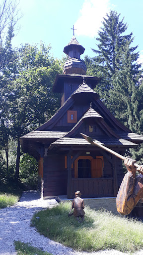 "Kam se ráda vracím.."po několika letech💗 Kaple sv. Huberta a Galerie dřevěných soch ve Velkých Karlovicích z roku 2014 Ve Zlínském kraji, uprostřed beskydských lesů v údolí potoka Pluskovce, stojí u Velkých Karlovic krásná dřevěná Kaple svatého Huberta. Kolem ní jsou navíc rozestavěny dřevěné sochy v životní velikosti tvořící jakousi galerii. Protože je okolí kaple lemováno lesy, získala jméno patrona všech myslivců. Kolem Kaple svatého Huberta stojí sochy, které znázorňují různá tradiční valašská řemesla. Nad kaplí je pak umístěný velký dřevěný betlém. Pod kaplí zase najdeme výjev ze šenku, neboli hospody, kde v životní velikosti ze dřeva vyřezané sochy sedí u stolu a hodují..Kaple svatého Huberta navíc svým vzhledem připomíná tradiční valašské stavení.Nad kaplí se nachází restaurace Kyčerka. Krásné místo...