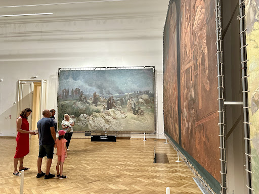 The castle and town are absolutely boring, don’t plan to spend even a minute more in that area. Three pubs open which have all together three meals to ofer. the town aside, the castle is absolutely not furnished to accommodate this monumental piece. Waiting room like at a doctor, small entrance with narrow stairs - i can understand that, when it is in old castle, but what is lacking in space should be compensate by organization. staff doesn’t tell you anything, or if so, the info is incorrect. supposedly without guide, when we were in the middle of selfvisit, the lady “kindly” started to speak without making sure everyone actually hears her. they let us wait in staircase which is the only entrance to the exhibit itself so all the people coming out has to meet the waiting ones - this situation doesn’t need to occur at all, if the staff would be a little bit useful and told to just wait a bit on the side!! finally 10 min after the time you buy ticket for lady comes and tells us almost irritated that we can open the door and enter the exhibit like a selfservice… in the meanwhile people with disabilities have to walk to the very narrow curved stairs and strollers are left in the reception. Just to find that the rooms are actually big enough to stroll the baby around (surprise, when the paintings are itself 10x10 meters big)…. just don’t except mush from czech organization ability. the slav epic celebrating their nation doesn’t reflect their real nature. however, The Slav epic itself is an amazing art piece and it’s...