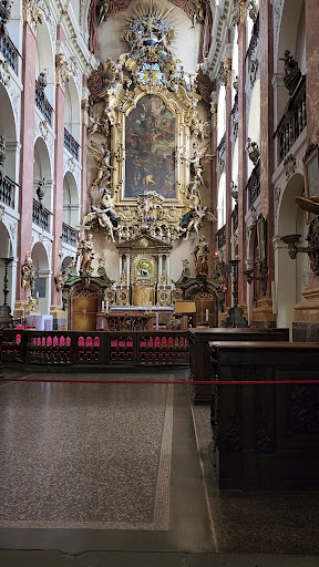 Read moreThis is an extremely ornate baroque era church. It is a big contrast to the nearby Tyn Church, which has far more simple interior. Here is the story of the mummified arm, courtesy Wikipedia: "There is also a mummified forearm to the right of the tomb entrance, dating back over 400 years. The arm is the arm of a jewel thief who tried to steal from the high altar, which has a statue of the Virgin Mary. It is believed that when the thief tried to steal the jewels, Mary grabbed his arm and would not let go, therefore his arm was cut...