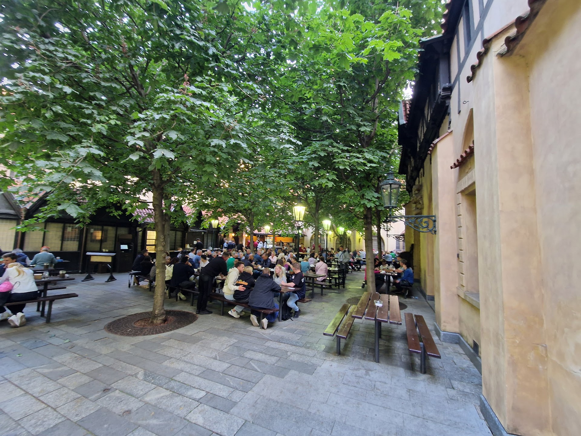 Read moreIn mod cert una dintre cele mai bune berarii din Praga, monument istoric (cladirea a fost terminata la 1499 capatand forma actuala in sec. XVIII), un adevarat muzeu al berii si imagine reala a modului in care cehii stiu sa petreaca, restaurantul U Fleku este indragit si frecventat mai ales de catre localnici (intr-o zi de joi, dupa-amiaza, terasa era plina de praghezi) dar si de catre turisti. Localul are o curte centrala deschisa vara unde clientii se aseaza la mese lungi, suficient de mari car sa ofere o anumita intimitate. Chelnerii se misca permanent intre mese purtand tavi cu doua tipuri de alcool (din care - intrebat fiind daca doresti - poti accepta sa iti fie oferit sau refuza) sau bere (pe care, evident, toti o comanda). Atmosfera este foarte vesela, zgomotoasa (dupa o anumita limita chiar euforica, fara a se exagera insa), buna dispozitie fiind sustinuta de catre un lautar (ex. un acordeonist) pe care uneori ajungi sa nu il mai auzi bine datorita larmei si rasetelor. Meniul este tipic ceh (se spune), desi mancarea pare mai repede germana. Excelent carnatul cu curry si cel picant dat si ciolanul de porc. Adevarata vedeta a localului este insa berea neagra, productie proprie - un amestec absolut delicios si echilibrat de caramel, dulce si amar avand un guler (spuma) cremos si rezistent - asta, evident, daca nu se sta cu halba plina prea mult timp, chestiune putin probabila insa... Si berea blonda este interesanta, fara sa fie insa cu adevarat remarcabila... Chelnerii sunt foarte amabili, atenti mereu sa fie bere pe masa. In stilul tipic german, chelnerul va inscrie pe o hartie (lasata langa client) cate beri sau tarie si ce mancare a consumat, acesta din urma platind la sfarsit la iesire. U Fleku merita, in egala masura, o vizita a interioarelor si (am inteles ca este posibil acest lucru) a zonei unde se produce berea - sali cu aspect medieval si decoratii unice, remarcabile. Restaurantul nu este departe de Orasul Vechi, de la U Fleku se poate face o plimbare de-a lungul Valtavei spre Vechea Primarie sau...