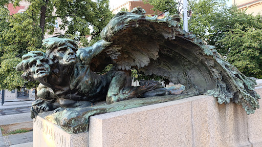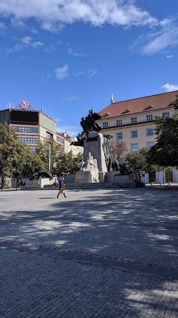 The monument is well ... monumental. It depicts a religiously themed, heaven and hell allegory depicting two groups of sculptures waging a battle between the forces of good and evil. The monument is massive compared to many other monuments in Prague and done is an odd asymmetricO Art Nouveau style. František Palacký sits passively at the centre of the monument while the figurative forces are on the verge of victory.