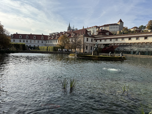A large pool with artificial island in the middle is located in the eastern part of the garden. There is a stone base standing holding a bronze statue of Hercule with a club in his hand which is just about to hit the dragon at his feet. The statue is a copy of the original de Vries sculpture taken by the Swedes at the end of the Thirty Years' War in 1648. A copy was created in the 19th Century by Hermann Bergmann in Stockholm on the order of Arnošt František...