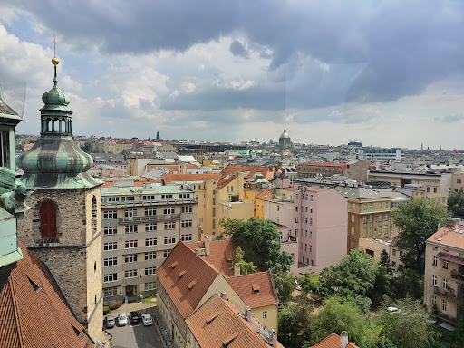 This well-preserved tower is sits near the Church of St Henry and St Cunigunde, as well as the Jerusalem Synagogue. For a fee of 99 Czech crowns you can ascend to the top, using stairs or elevator. At the top is an atmospheric dark little room where you can see the beams of the top of the tower and also gaze out from the windows of the four turrets. This gives some great views of Prague, although Prague is a city with many other spectacular viewpoints.