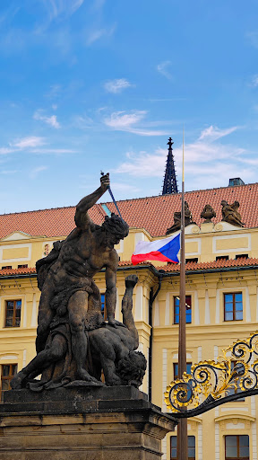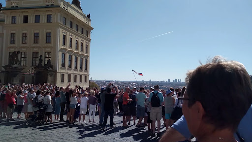 Read moreמקום יפה, בחלקה העליון והמערבי של מצודת פראג המרהיבה. במקום זה מתקיים טקס החלפת המשמר הרפובליקני של המצודה. בכיכר שלפניו, מתקיימות הופעות רחוב של נגנים ואמנים שונים, וגם תושבים בלבוש מסורתי מציעים למטיילים ללבוש בגדי מלוכה ולהצטלם איתם בוריאציות שונות. נחמד מאוד. מעבר לחומה שבצד המצוד מתגלה נוף עוצר נשימה של העיר פראג. לא תפסיקו לצלם. Beautiful place, on the upper and western sides of the magnificent Prague Castle. Instead, there is a ceremony to replace the Republican guard of the fortress. In the square in front of him there are street performances by various musicians and artists, and residents in traditional garb offer travelers to wear royal clothes and photograph with them in different variations. Very nice. Beyond the wall on the side of the hunt is a breathtaking view of the city of Prague. Do not stop...