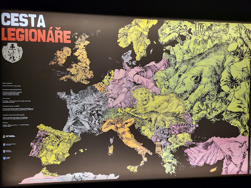 Ich habe das Museum bei meinem Pragbesuch durch Zufall entdeckt. Von außen war zu erkennen, dass es sich um ein Museum über den ersten Weltkrieg handelt. Nach der Lektüre von Erich Maria Remarques "Im Westen nichts neues" hatte ich großes Interesse ein solches Museum zu besuchen. Im Inneren des Museums trafen wir auf Mitarbeiter, die uns erklärten es gebe keine Informationen zu den Exponaten auf Deutsch, und nur wenige auf Englisch. Sie können uns aber einen Film mit deutschen Untertiteln zeigen, der alles erkläre. Gesagt getan. Der Film erklärte die genauere Thematik des Museums, tschechische Legionäre zur Zeit des ersten WK. Diese haben zunächst an der Seite Russlands gekämpft und dann gegen Russland und waren dabei immer die mutigsten, tapfersten und besten. Okay. Das eigentliche Museum beinhaltet viele Exponate aus der Zeit des ersten WK, z.B. Uniformen, Waffen, Ausrüstung. Auch eine Nachbildung eines Schützengrabens gibt es zu besichtigen und zu betreten. Am Ende gab es noch Tafeln mit Informationen auf Tschechisch.