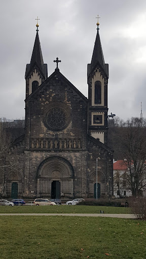 The three-nave Neo-Romanesque basilica on Karlín Square is one of the largest Czech sacral buildings of the 19th century. It is 75 meters long and 31 meters wide, both tall towers reaching a height of over 78 meters. The architects Karl Rösner and Vojtěch Ignác Ullmann participated in the project. Jan Bělský carried out the construction work and Karel Svoboda stonework. The foundation stone was laid on 10 June 1854 with the participation of Emperor Franz Joseph I and his wife Empress Elizabeth. The construction lasted nine years and was ceremonially consecrated on October 18, 1863, on the occasion of the millennium of the arrival of the Slavonic missionaries to Moravia. The northern façade is decorated with eleven statues, Christ and ten Czech patrons by Čeněk Vosmík from 1913. Above the main gate in the center is the figure of Jesus Christ and the Slavic apostles Cyril and Methodius kneeling on both sides. The decoration and sculptural decoration of the temple continued until the end of the 19th century and was attended by several generations of...