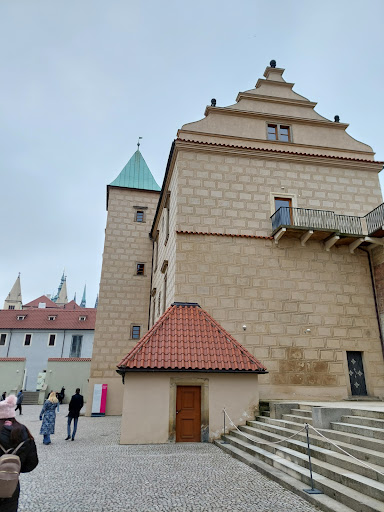 Read moreČerná věž (též známá jako Zlatá věž) na Pražském hradě je výrazná čtyřboká kamenná věž a zcela jediná dochovaná z původního románského opevnění. Z východní strany od Starých zámeckých schodů je nepřehlédnutelnou dominantou tvořící ucelený pohled směrem od historického centra královského města Prahy a údolí řeky Vltavy. Zpět k popisu Černé věže i když v průběhu staletí prošla různými úpravami zachovala si dodnes charakter ze 12. století. Tato románská čtyřboká věž s bránou, s půdorysem 11 × 11 metrů a tloušťkou zdí asi 2,4 m., kde severní zeď má dokonce tloušťku 3 m. Současná výška z vnější (východní) strany až po gotickou římsu činí 26 metrů. Věž vznikla jako brána patrně současně s celým románským opevněním Pražského hradu krátce po roce 1135. Za vlády Karla IV. byla střecha věže pokryta pozlaceným olověným plechem, aby příchozí byly upozorněni již z dálky, že se blíží k sídlu význačného panovníka 🫅🏰. Po velkém požáru 2. června 1541 Malé Strany a Hradčan byla sice věž uchráněna, ale její zdivo bylo od kouře značně zčernalé a tak se jí začalo říkat Černá věž. Dnes je veřejnosti nepřístupná, ale většině návštěvníků a turistů slouží dál alespoň jako jeden z význačných vstupů do velkého areálu Pražského hradu a vlevo od vstupu a stožáru s Českou vlajkou 🇨🇿 je umístěna důležitá mapa této významné památky...