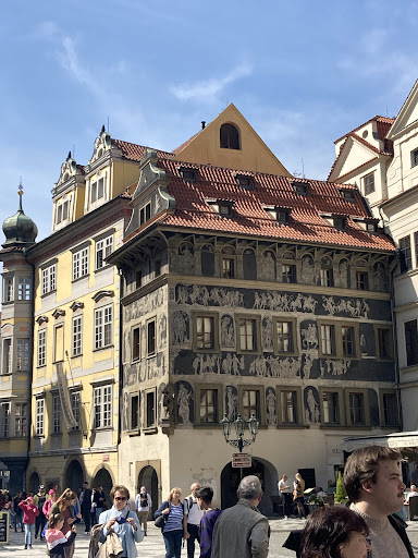 Read moreThe House at the Minute at number 3 (Dům U Minuty) is undoubtedly one of the most dazzling houses you will encounter on our free Prague walking tour. It was originally a late-Gothic house from the 15th century that received a Renaissance makeover in 1564. The house is famous for its numerous beautiful sgraffito etchings that were added to the facade in 1610. The white etchings on the black facade depict Habsburg rulers like Philip II of Spain, Rudolph II, and Maxmilian II, among others along with scenes from Greek mythology and references to biblical and Renaissance legends. The house has served many purposes and has had varied names. At one time it was an apothecary and called “The House at the White Lion” for the sculpture of the white lion at the corner. The house also once served as a tobacconist shop, and the current name, “House at the Minute” was taken from the word ‘minute,’ i.e., very tiny, referring to the diminutive pieces of tobacco sold there. It is also famous for being the childhood home of Franz Kafka and his family in the late...