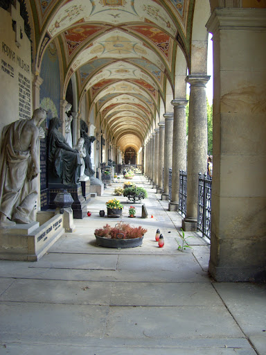 Read moreNext to the Basilica of Sts. Peter and Paul is the small, crowded, but also famous Vyšehrad Cemetery. Famous for being the final resting place of many Czech celebrities, primarily artists (Dvorak, Smetana, and Mucha are among the most famous), but also several politicians and scientists. This cemetery was founded in 1869 by priest and writer Václav Svatopluk Štulc on a cemetery that had existed since 1660. During the cultural revival in the mid-19th century, there were plans to make Vyšehrad the national cemetery. Architect Antonín Wiehl (1846-1910) designed the surrounding arcade in the Italian style, complete with accompanying tombs; he himself is buried in one of these tombs. The Slavín Pantheon is also his work. Anyone visiting Vyšehrad should definitely not miss...