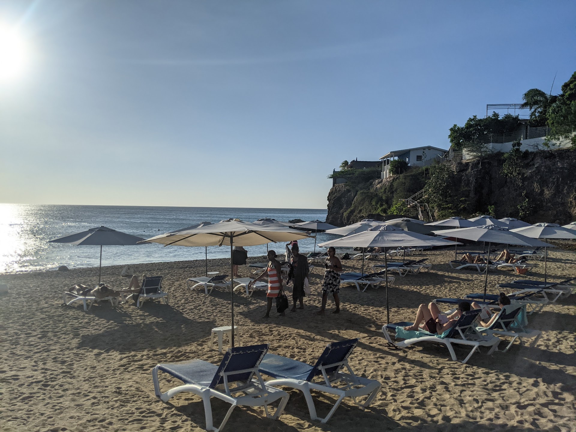 The beach itself is not huge, but there was more than enough shade when we got there (for 3 USD/chair). We went on a Sunday, which is when all the bikers take their motorcycles out to the north/west point of the island. There were a few bikers revving their engines quite loudly, which was a bit annoying. If this would bother you, avoid coming here on a Sunday afternoon. One last point: since the beach is at the north/west point of the island, you will get a perfect...