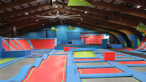 Read moreThis trampoline theme park is an excellent place to spend a sweat-dripping hour or two with your kids. The lace is several warehouse floors stuffed with any kind of trampoline imaginable and interconnected so you can jump directly from one to another. Walls and slopes are trampolines, too. Bring water, you will need it. The cafeteria sells warm and cold drinks, ice cream, cake and lots of candy. They have some (boring) pizza slices, too. Birthday parties can be celebrated in separate rooms where drinks, foods and jumping is a one...