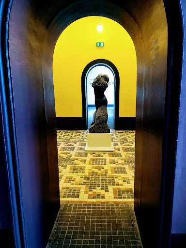 Bygningerne giver i dekoration og udformning mindelser til en krydsning af Thorvaldsens Museum og en Pompejansk villa, hvad førstnævnte vel også læner sig op af, men her har vi mere små lavloftede og intime rum, gode stærke farver på væggene, og fine mosaikgulve. En lille café gik til under coronaen, og er aktuelt reduceret til mulighed for en vand, lidt kaffe og måske lidt sødt, enten ved høflig selvbetjening, eller pt også ved skranken.