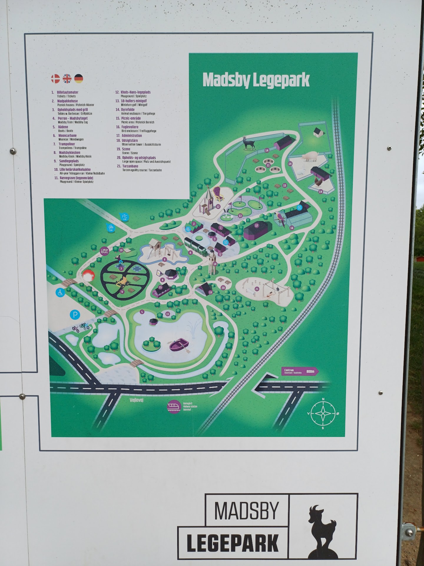 In the city of Frederica. You can stay a hole day with child's in very different Olds. A big playground with many different games. Also animals to watch. The miniby is near and there is a tourist "railway" pendeling between. Don't remember the price exactly, but I think about 20€ for 2 Adults and 2 Children for the train. The entrence for the park is free, only the parking ground costs. You are also able to grill your things when you rent a big station Grill. Miniby was closed at our visit so I can't say...