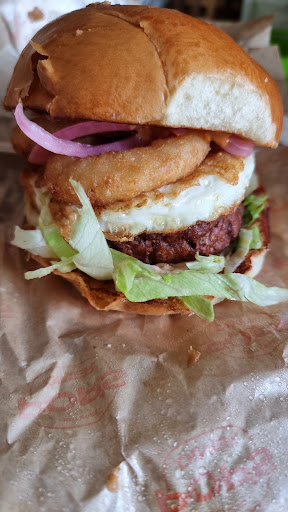 Read moreBest vegetarian burger in my life (although I had better vegan ones 😉). I've always ordered the same Tasty Veggie without cheese and always can expect exactly the same, no order mixed, always packed with filling. Burger patty (I'm pretty sure is from Naturli) is quite dry, but the amount of chilli Mayo, greasiness of onion rings, and softness of sunny side up egg give it to the burger great balance between crispness and softness. It's so mouthwatering...