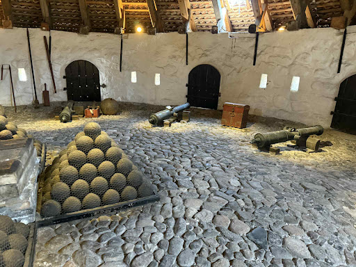 På våning 2 fanns det kanoner och kulor att se. OBS! Det var väldigt brant trappa/stege att komma upp.