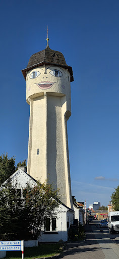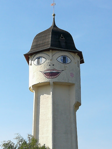 The water tower in Sakskøbing was built in 1908 by Christiani & Nielsen. In connection with the restoration in 1982, the tower was decorated with a smiling face, designed by architect Flemming Skude. Before the inauguration, the project with the face was controversial in the local area, but later the 'smile' has become a landmark of the city, and now goes by the nickname 'Saxine'. The face of the tower was...