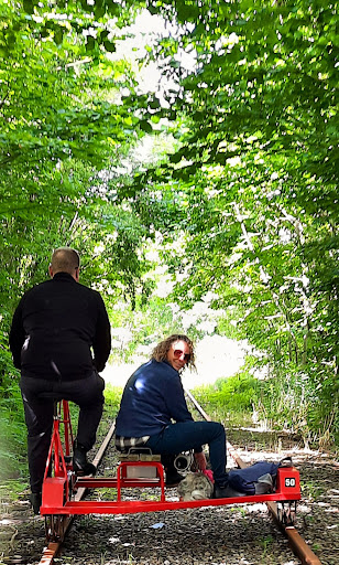 Nette Freizeitbeschäftigung! Wir haben eine Std Draisinen-Fahrt gemacht. Für unseren Geschmack reicht's das aus.es war sehr nett und hat Spaß gemacht. Zum Glück kam uns niemand entgegen,denn dann hätte eine Draisine aus den Schienen gehoben werden müssen....das wäre für meine Frau eventuell problematisch geworden. Aber grundsätzlich sind dann ja 2 Mannschaften/4 Personen vorhanden.sollte also auch klappen. Nächstes Mal Versuche ich es mal mit einem Leihkanu.dann auch...