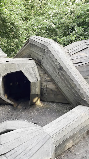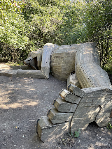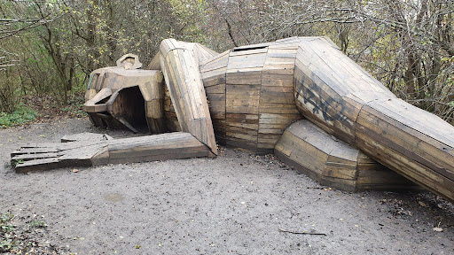 This one was the most accessible of the 6 forgotten giants sculptures. It is located not that far away from the camping, but easier to access from the public parking area than from the camping itself. Located in Rødovre, nearby one of the main streets. This one just like the majority of the other 5recycled tree sculptures, was also used as a kids playground in the weekend days. Do not let the kids to climb it because they are destroying...