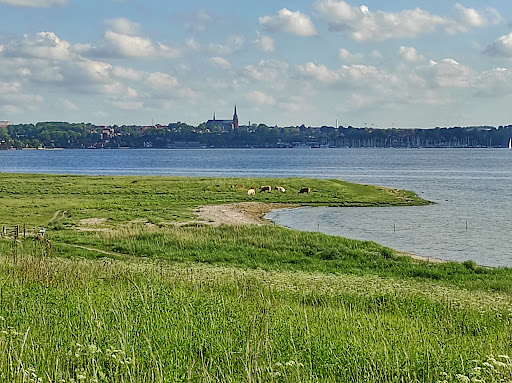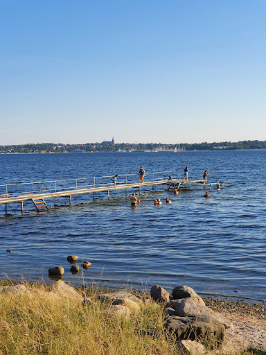 Nice kid-friendly beach. Use one of the two jetties to get to water with a clean sandy bottom. Good swimming between the two jetties and a floating platform about 50-70m from the jetty. Given the sheltered location, there are never big waves, and in sunny weather the water gets relatively warm quite quickly. Good facilities (bathroom, cafe, ice cream, playground, accommodation) in the Vigen camping right next to the beach. Nice walk to Veddelev harbour with views over the Roskilde fjord with its bird reserves, and dominated by the...