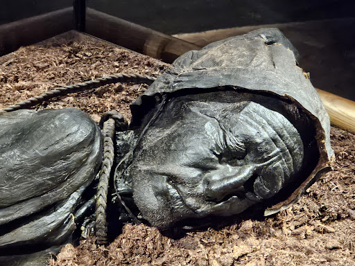 This is a well preserved iron age body (going back to 500BC) which is exceptionally well preserved and was dug up in a nearby bog. It's an exhibit of international importance and is alongside a much bigger display on Iron Age life.