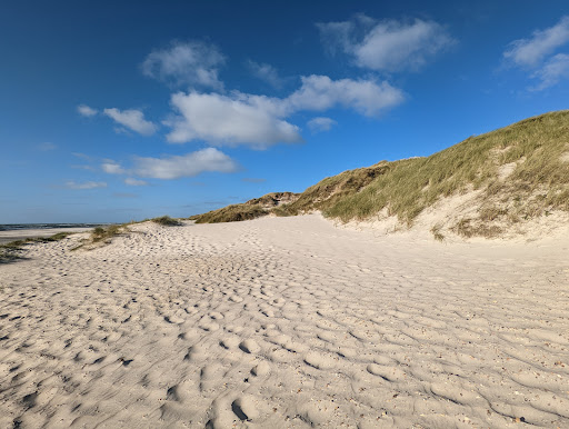 A wonderful, natural beach. No tractors combing the sand clean. No beach chairs, great dunes covered with lush beach grass, plus the roaring surf of the North Sea and endless space on which the few vacationers effortlessly lose themselves. There is nothing here but nature ... no restaurants, no cafes, no playgrounds, no benches or beer tables ... but an incredible amount of space, lots of sand, the ocean and no cars driving on the beach. What a beautiful place...